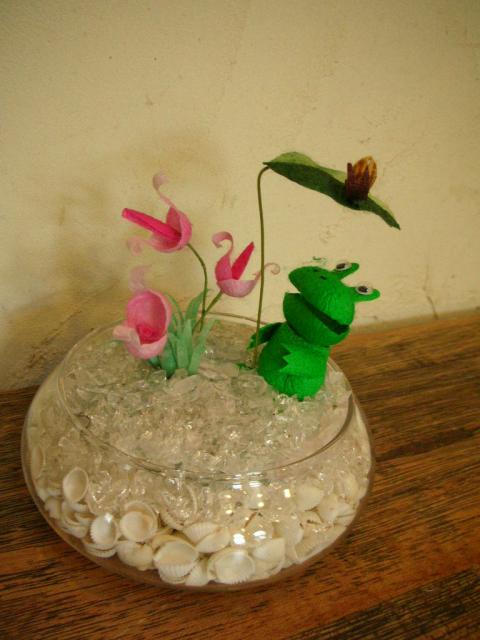 材料・・・かいこのまゆ、水晶、ローズクォーツ、貝など