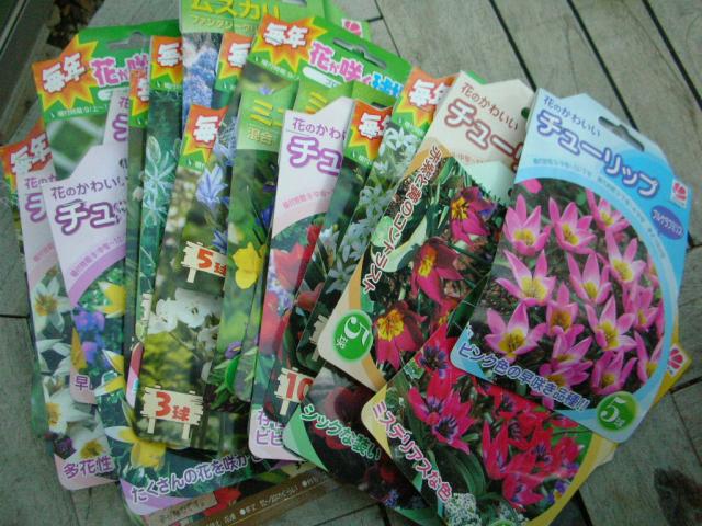 2010年12月13日(月) 春が待ち遠しい❤ お店の庭にたくさんの球根を植えました。 チューリップ5色50球、ミニチューリップ10色55球、オーニソガラム、ムスカリなど色々110球!!! 春が待ち遠しいです♪ 単純計算で、これだけで910本の花が咲くってことかと思うと❤❤❤嬉しくなります(*^_^*) お店でも、たくさんの方にお花を楽しんでもらいたいと思い、お値段抑えてお分けします♪ なにせ大量買いしたので・・・・ チューリップ10球300円、各球根袋入り300円になってますのでお早めにどうぞ~♪