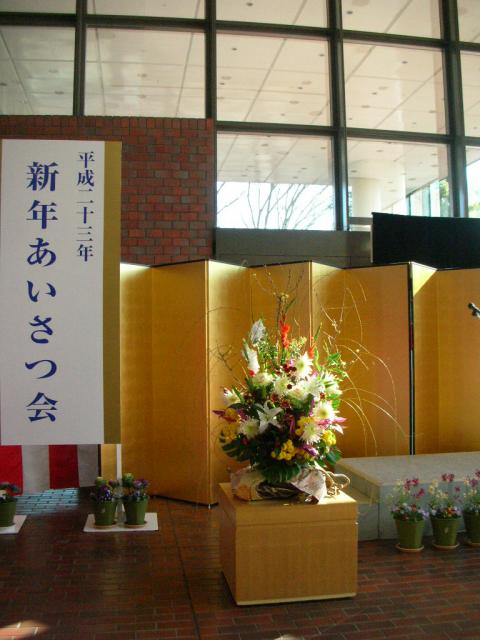 市長さんがこのお花の横で新年の始まりのご挨拶をされるので、そんな場にふさわしいようお花を選びました。