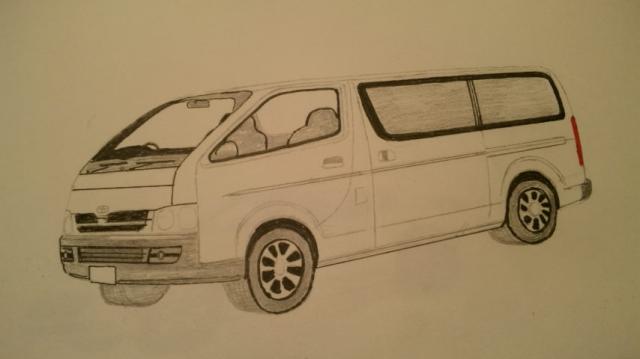 ハイエースは、写真を見て、あとのものは空想上の『夢の車』だそうです。
