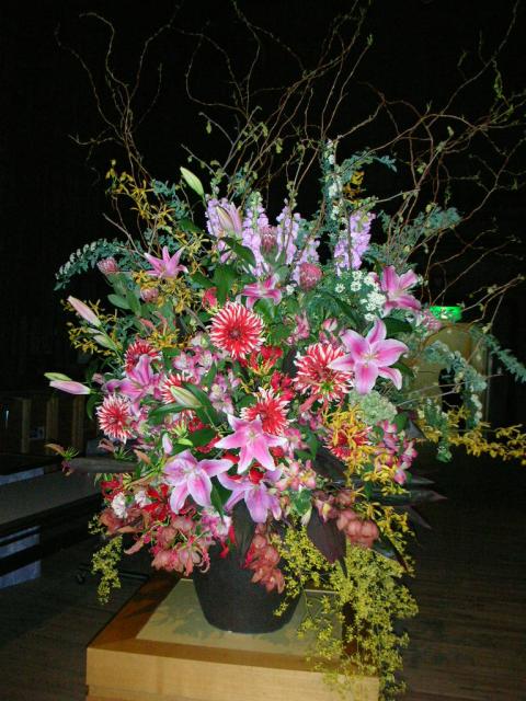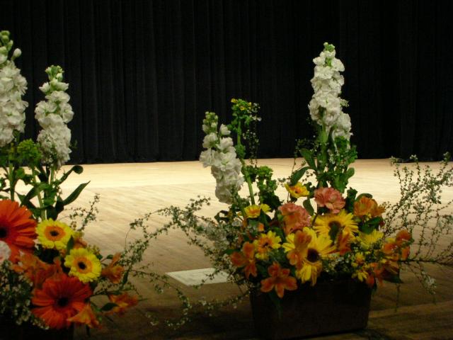 舞台袖にて生け込んだので、大ホールの舞台上でどんな感じだったかは私の目では確認できていませんが、