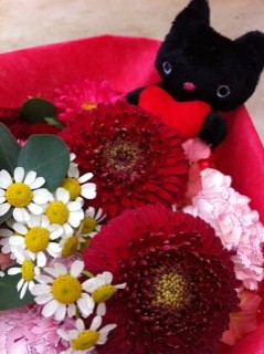 2011年06月11日(土) new style いつもは、大人っぽいシックなものや、 アンティークっぽいお花を作ることが多いのですが。 近頃はニャンコやクマさんをお入れして 可愛い雰囲気たっぷりの花束もお作りします(*^v^*) いつもと違う感じで私もちょっぴりわくわくです♪♪ 他にはない特別な花束!! 子供さんの発表会やお祝いにおすすめ☆です。 ニャンコたちをお入れしたい場合は 事前のご予約をお願いしますm(__)m 岩松