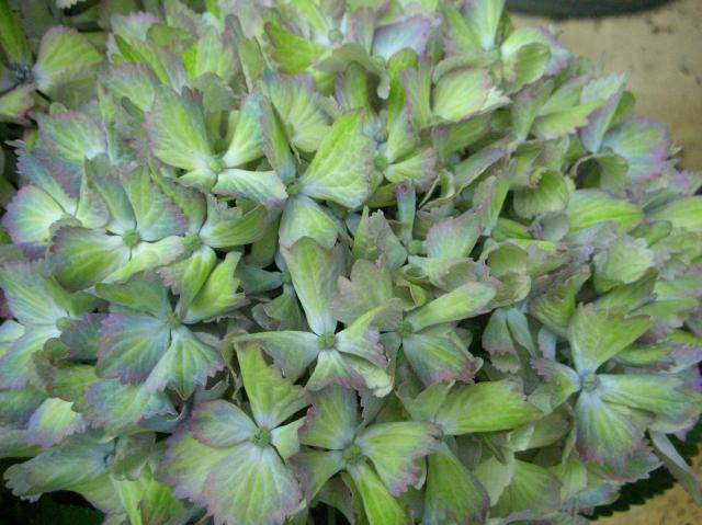2011年06月12日(日) アンティークカラーのあじさい 『あじさい』の季節ですね。 毎年色んな種類のあじさいが入荷します。 その中でも一番人気なのが、この手の色合いの子たちです。 もともとの色が変わってグリーンぽいアンティークな色に変化してくるのです。 普通のあじさいよりずっと長持ちで、私も他の品種のものを自分の部屋に飾っていますが、水やりも楽ですごく長く楽しめます。 あと、あじさいって品種によってはドライにもなってさらに長持ちするので人気があります。 是非お勧めしたいお花の一つです(^-^)