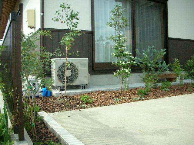 親御様のほうが既存和風の家、娘様が隣に新築で建てられたのでそれぞれの建物に合うように、いろいろ希望を取り入れ5か所、植えさせて頂きました。