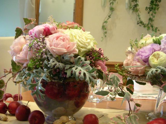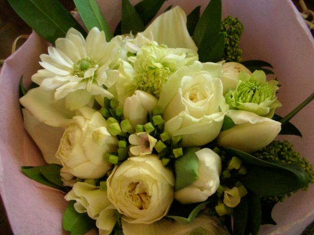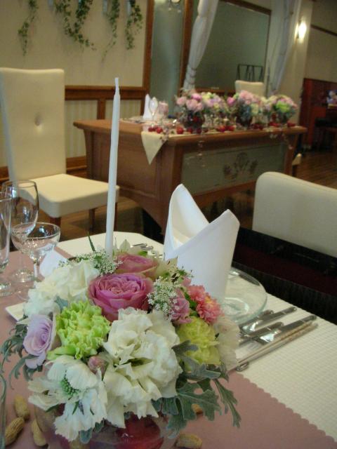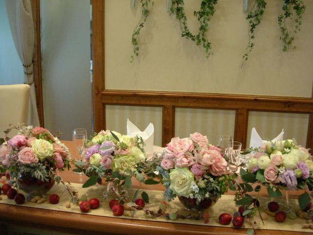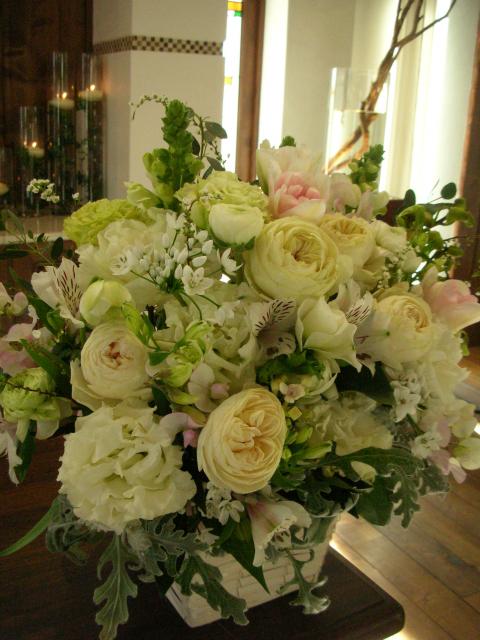 2012年01月30日(月) ブライダル❀ブーケ 先日、日進のオランジュベールさんにて挙式のお花を全て担当させて頂きました。 会場メイン、ゲストテーブル、花束、キャスケードブーケ、クラッチブーケ、教会チエアー装飾、壇上、トスブーケ、両親花束などなど・・・・ すごく沢山のお花で贅沢にバラやトルコキキョウなどを使い、コーディネートさせていただきました。 挙式後はブーケを2点共ドライ加工させていただきました。 持ち込みブーケなどご相談承ります。 ご予約の上、ご相談におでかけくださいませ。 お待ちしております。