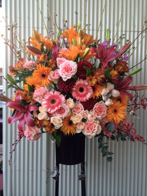 お店の開店祝いや周年祝い、発表会等に使われるスタンド花です。